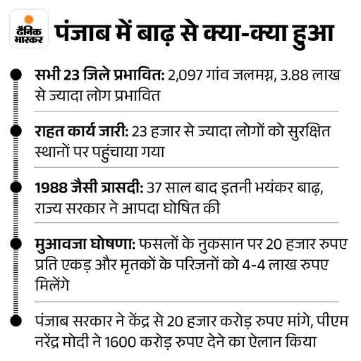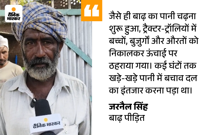 Village Ghnewal’s Jarnail Singh Told that water had come while sleeping on the day of destruction. Then the Dhusi dam of Ghnewal village started breaking. 5 dams were broken one after the other. Animals were swept away along with crops and some people lost their lives. In tractor-trolleys, children, elderly and women were removed and held at a height. The rescue team had to wait in the water standing for several hours.