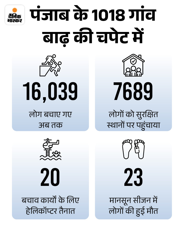 - Rescue operation in Punjab: Punjab Police, Indian Army, Border Security Force (BSF), National Disaster Response Force (NDRF), State Disaster Response Force (SDRF) and Civil Administration are engaged in relief and rescue operations. So far 7689 people have been delivered to safe places.