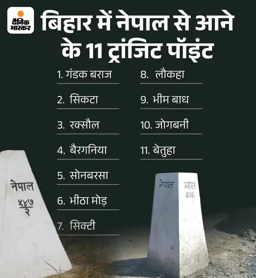 There is an open border between India and Nepal. This makes people easier to move. Entry from Nepal to India via Bihar is quite easy. It happens in three ways.