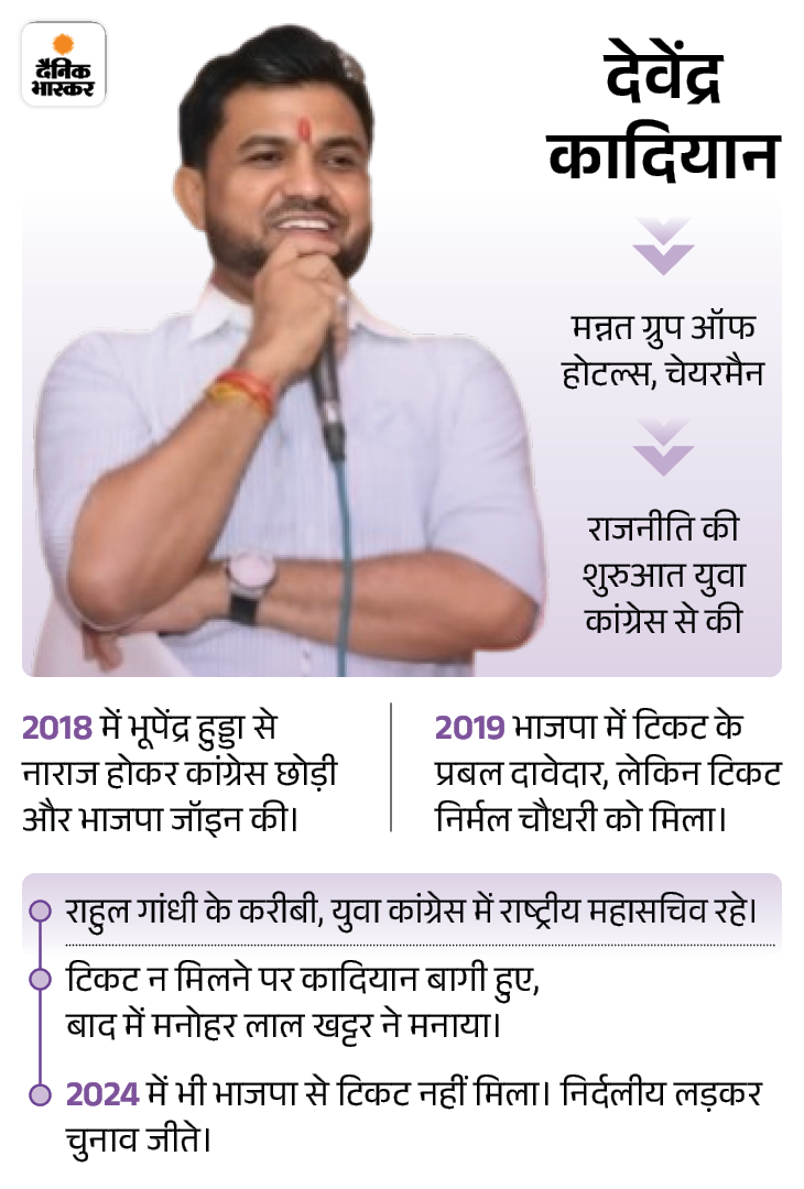 After the results, Kadian first supported BJP However, in October, the BJP got an absolute majority due to 48 seats on its own. After the results, Devendra Kadian, who won Independents from Gannaur, first announced his support to the BJP. BJP’s official candidate Devendra Kaushik finished third in this light.