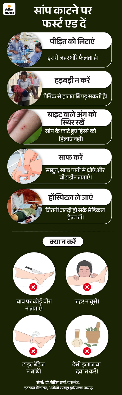 One person died due to snake bite in Hisar district of Haryana. Instead of taking him to the hospital on time, the family had been walking around in a circle of chaos. About 7 hours later, when the young man was brought to the hospital of Jind, doctors declared him dead. (Read full news)