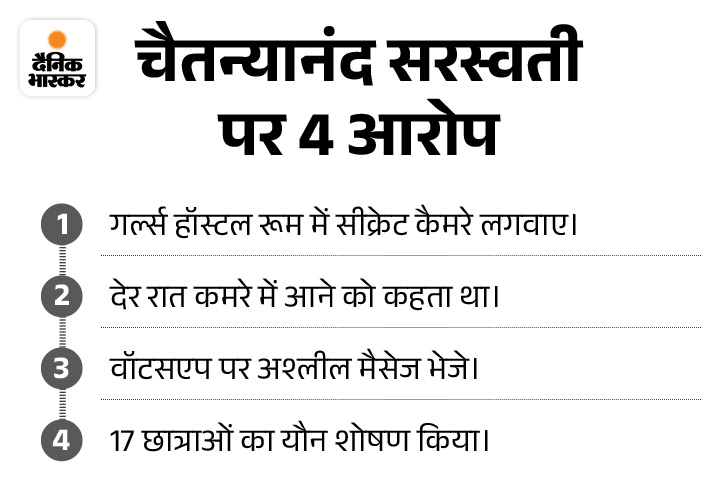 Chaitanyanand was arrested from Agra on 27 September and brought to Delhi. On September 28, Delhi Police had taken Chaitanyananda on remand for 5 days.