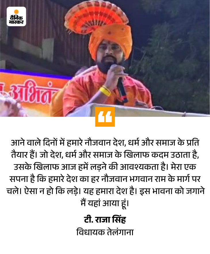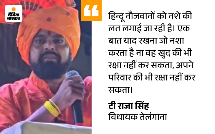 In Indore, Telangana MLA T. Raja administered the oath to the people to make Jihadi -free Madhya Pradesh. He urged Dr. Mohan Yadav, Chief Minister of Madhya Pradesh to make the state free by putting banners in the markets of MP.