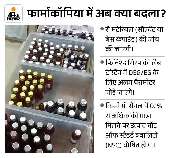 Central government took action within 24 hours Within 24 hours of receiving the report from the state, i.e. on October 10, 2025, the Drugs Controller General (DCGI) took cognizance of it. After this, the Indian Pharmacopoeia Commission (IPC) took immediate action and issued amendments in the 9th Edition of Indian Pharmacopoeia (EOIP-2022). As soon as this amendment came into effect, it was sent to drug controllers, lab directors, pharma associations and pharmaceutical industry organizations across the country.