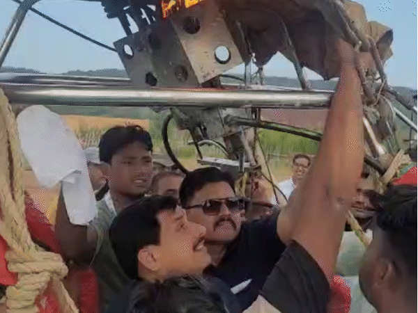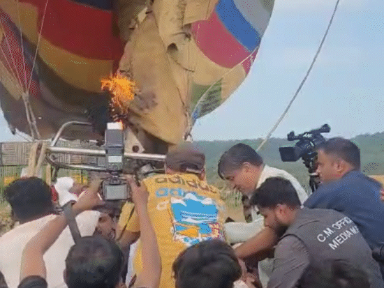 Chief Minister Dr. Mohan Yadav boarded the hot balloon on Saturday morning after the night hall at Hinglage Resort near Gandhisagar Forest Retreat in Madhya Pradesh, but the balloon could not fly the balloon due to the wind speed being 20 km per hour. During this time fire in its lower part