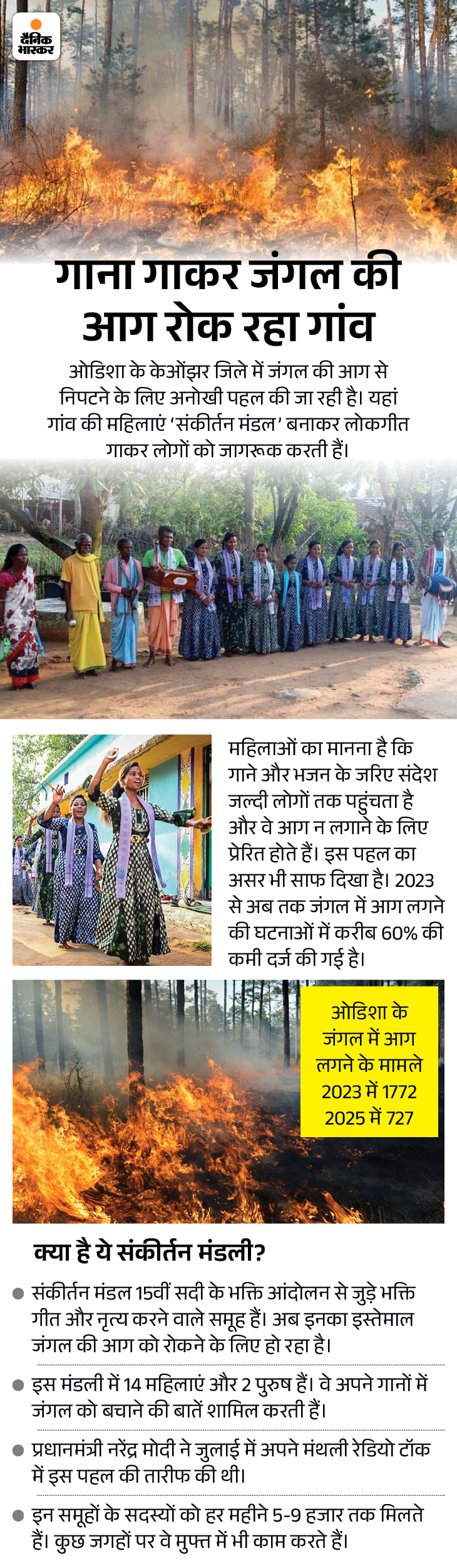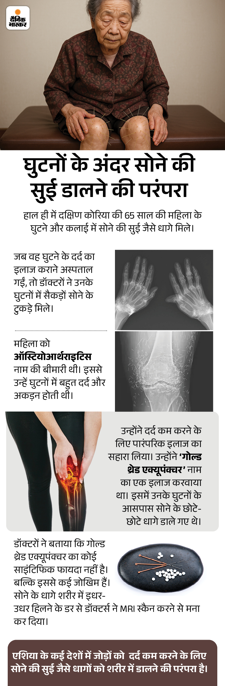 To get rid of the pain of the knee and wrist, a woman put gold needles in the body. At the same time, women in a village in Odisha are campaigning to stop forest fire by singing folk songs.