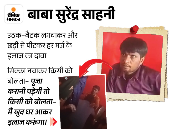 सुरेंद्र साहनी बीमार लोगों का इलाज झाड़-फूंक से कर रहा था। वह मरीजों का हाथ पकड़कर उठक-बैठक कराता। उनके शरीर पर पहले हाथ से और फिर छड़ी से मारता। इसके बाद बोलता- जाओ दर्द ठीक हो गया। यह सब कुछ हमने 2 घंटे तक देखा। इस बीच हम सुरेंद्र साहनी के करीब पहुंच गए। जब उन्होंने हमें देखा तो बातचीत का सिलसिला शुरू हुआ…