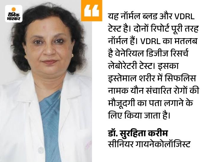 Senior Gynecologist Bid- Report is normal We tested the authorized pathology lab. Then both the investigation reports were shown, then Dr. Surhita Karim, Senior Gynecologist of Gorakhpur, said- Both reports are completely normal.